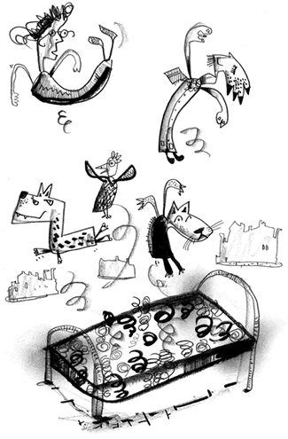 She thought about all this as she slipped off her shoes and climbed onto the bed to practise her bouncing.